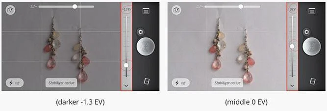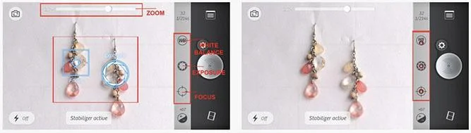 Exposure: بخش دایرهای شکل Exposure را لمس کرده و سپس بر روی محصول خود ضربه بزنید؛ این کار باعث میشود محصول شما توسط دوربین به خوبی نمایش داده شود.