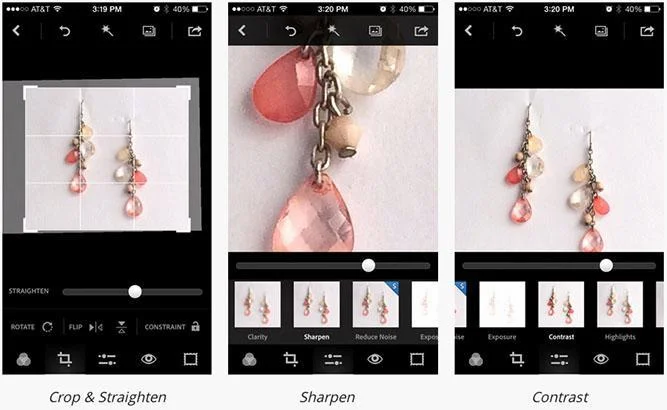 هم اکنون و پس از آن که تصاویر را از پوشه برنامه Camera+ به گالری دستگاه خود منتقل کردیم، میتوانیم با اجرای برنامه فتوشاپ و انتخاب هر کدام از تصاویر، ویرایشهای موردنظر را انجام دهیم. بد نیست بدانید کلیه تصاویر دیجیتالی برای آن که باکیفیت و قابل قبولتر شوند، نیازمند ویرایش اندکی هستند و شما میتوانید از تنظیمات پایه ویرایش تصاویر همانند برش، مرتب کردن، کنتراست و سایه استفاده کنید.