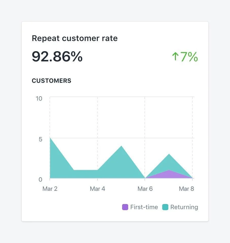 نرخ مشتری تکراری، ستون فقرات حفظ مشتری است. این معیار، درصد مشتریانی را که متمایل به خرید دوباره از شما هستند را می سنجد. سنجش نرخ تکرار خرید، راهی عالی برای ارزیابی میزان درست عمل کردن استراتژی حفظ مشتری شماست. هر چه این معیار بالاتر باشد، مشتریان بیشتری تمایل به بازگشت به فروشگاه شما دارند.