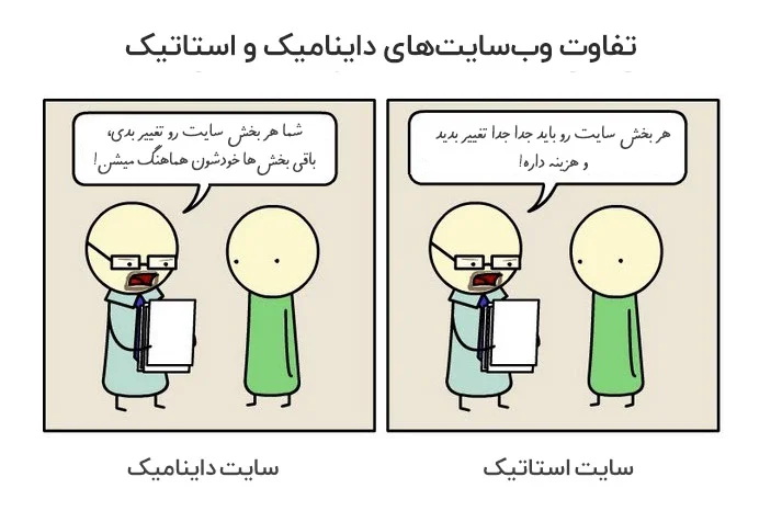 - تغییرات یک وبسایت استاتیک در آینده برای شما بسیار هزینهبر خواهد بود. چرا که هر تغییر کوچک باید در تک تک صفحات سایت اعمال شود و بابت هر بار تغییر شما باید هزینهای به یک طراح بپردازید.