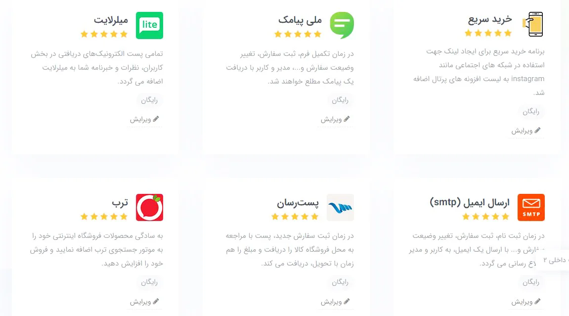 - بیشتر از 10 افزونه متفاوت و بسیار کاربردی از جمله: اتصال سیستم پیامک، ارسال ایمیل، اتصال به اینستاگرام، چت آنلاین و... دارد. (امکانات و افزونه های پرتال)