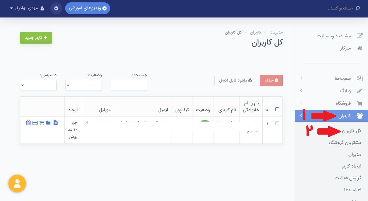 - از منوی سمت راست پنل مدیریت روی گزینۀ کاربران کلیک کنید.