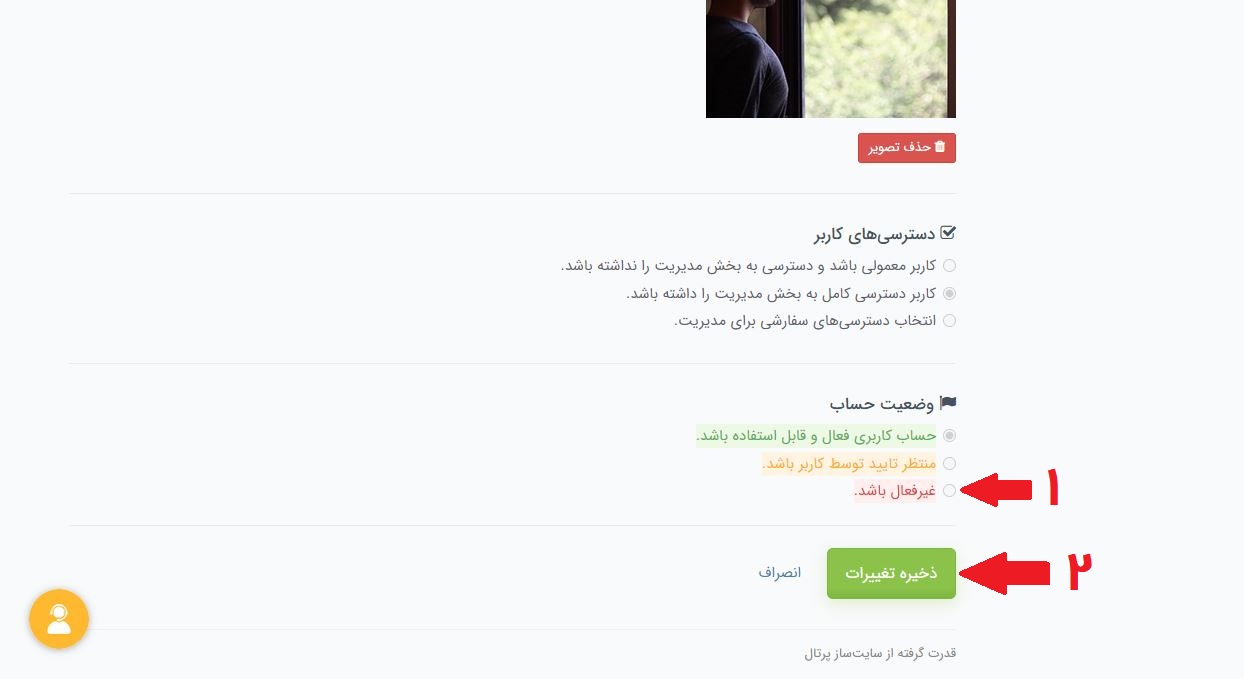 برای غیرفعال کردن یک کاربر باید مراحل زیر را طی کنید: