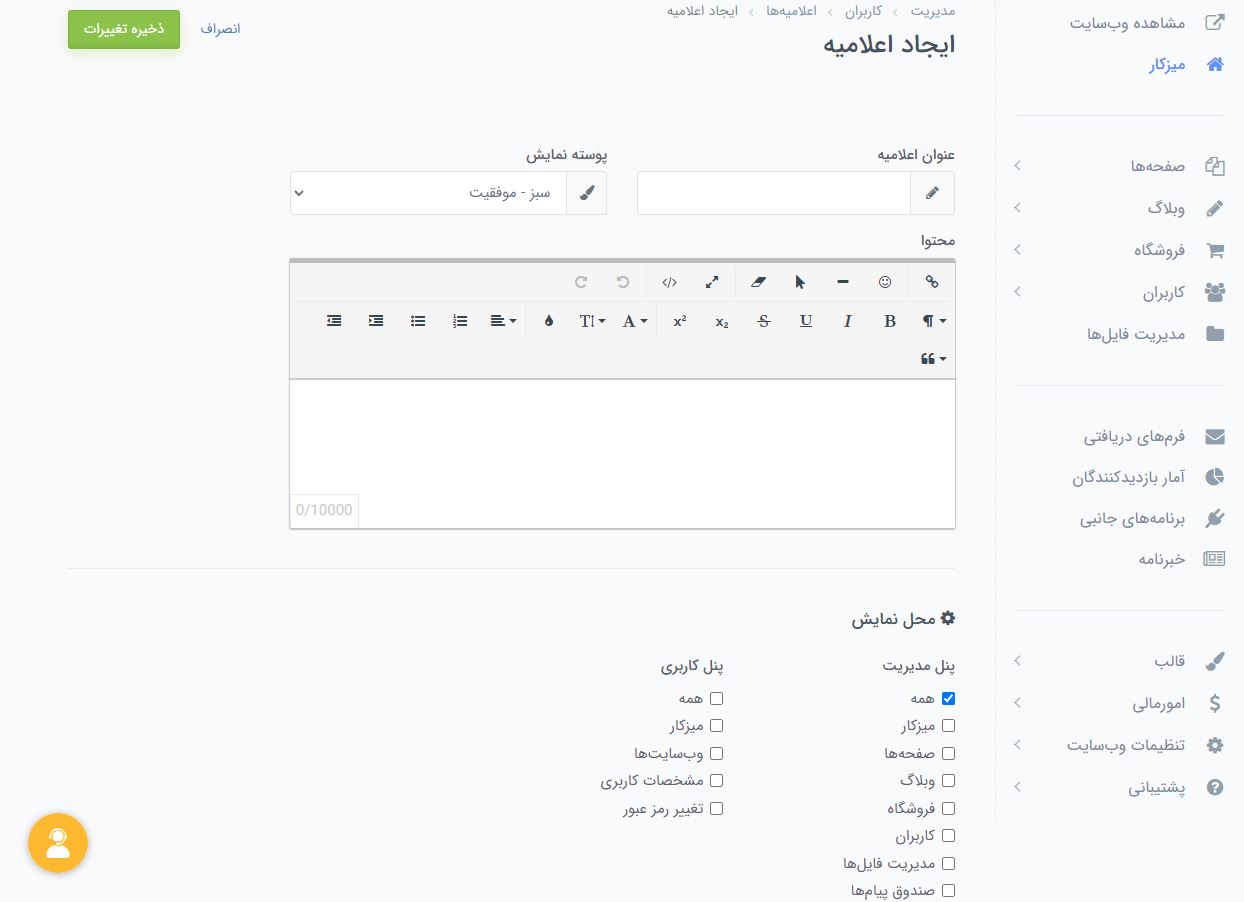 - در پایان روی دکمۀ "ذخیره تغییرات" کلیک کنید تا اعلامیه ایجاد شود.