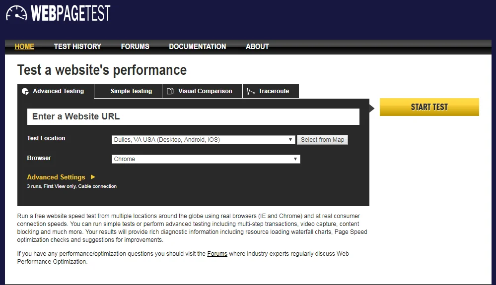 در این ابزار شما می توانید نوع مرورگر را برای تست سرعت سایت انتخاب کنید و همچنین موقعیت سرور خود را نیز در فیلد جداگانه وارد کرده و در مجموع اطلاعات دقیقی که به صورت sort شده می باشد در اختیار شما قرار خواهد داد. این ابزار 40 مکان و 25 مرورگر را نیز پوشش می دهد. سایت دسترسی به این ابزار https://www.webpagetest.org/ می باشد.