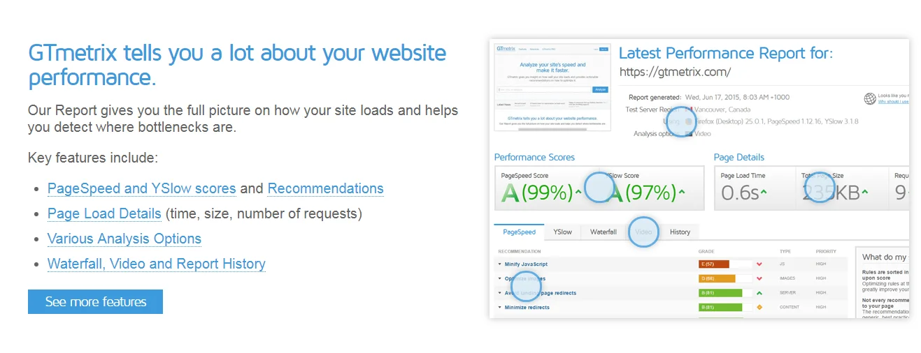 این ابزار برای تست سرعت سایت شما امتیازی از 0 تا 100 را خواهد داد که امتیاز بالا نشان دهنده بهینه بودن سرعت سایت می باشد و همچنین این ابزار به وسیله نماهای گرافیکی اطلاعات سایت شما را به نمایش میگذارد که طرحی زیبا و در نوع خود قشنک می باشد.