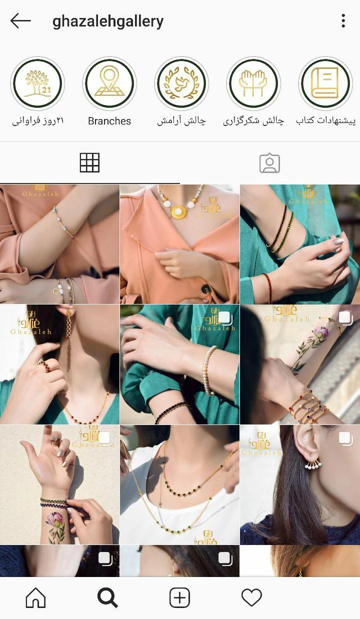 دو نمونه از فروشگاه های طلاوجواهر اینستاگرامی را در تصویر میبینید: