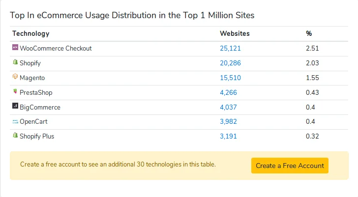 همانطور که در تصویر فوق میبینید، بر اساس آخرین آمار ارائه شده از سوی وبسایت Builtwith فروشگاه ساز پرستاشاپ توانسته است سهم 0.43 درصدی را از آن خود کند. این سیستم فروشگاه ساز امکان ساخت فروشگاه اینترنتی در زمینه محصولات فیزیکی و دانلودی را به شما خواهد داد که به راحتی میتوانید اقدام به فروش آنها بکنید.